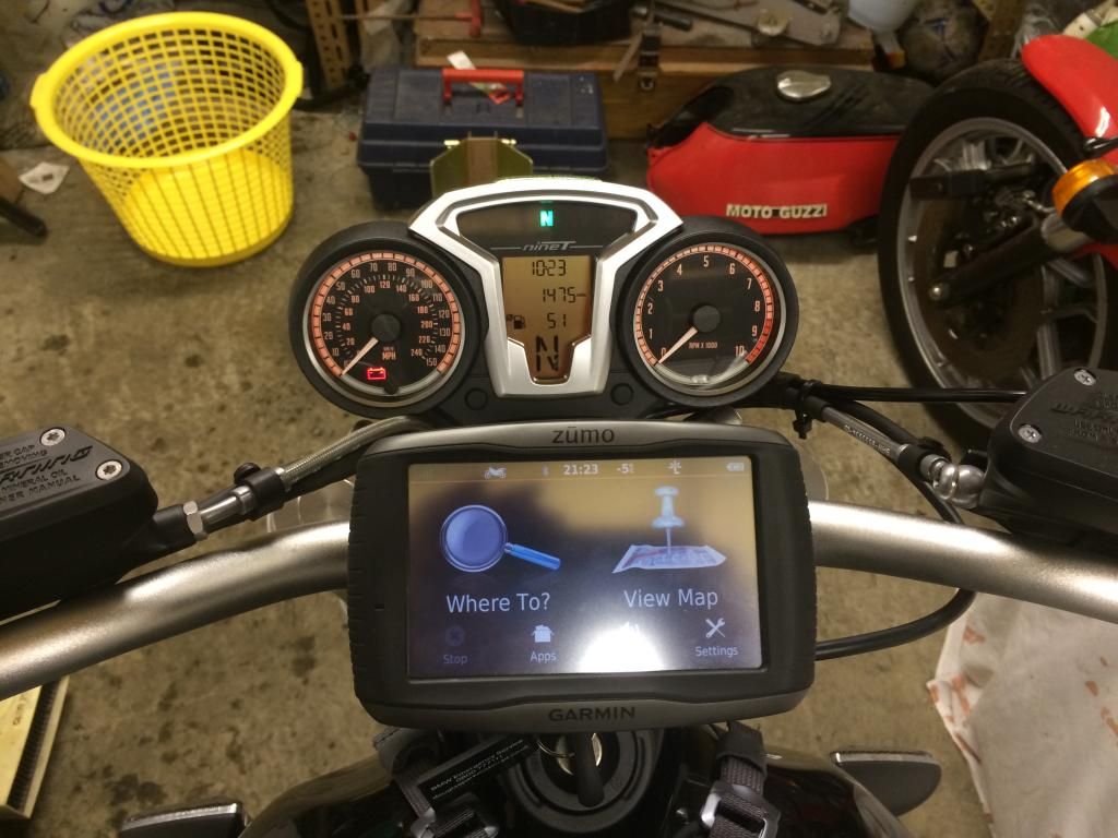 Well here's what I'm getting up to in my den this winter. The weather is officially shitty and my bike has been tucked away in semi hibernation for a month now. Time to amuse myself and start bolting on bits that I'd been gathering since buying the bike, but couldn't stop riding it for long enough to fit.