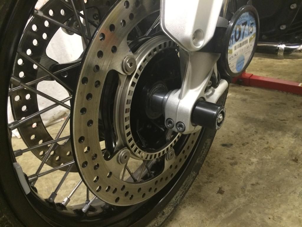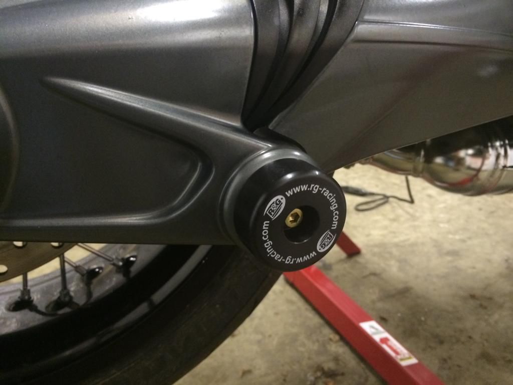 An easy enough install once the silencer and rear wheel is removed, but I was uneasy with simply using the bolts provided with the Hugger as the bolts that came off the rear bevel drive had large captive washers on them, so I used some that I had in the garage. Took it nice and steady torqueing up the bolts to the required value given by Ilmberger, and there were a few creaks of complaint from the hugger as I neared full tightness. Sweaty palms time! lol