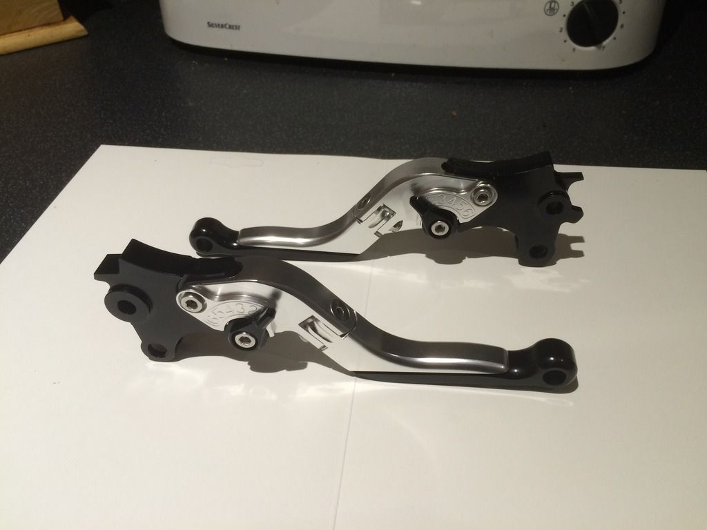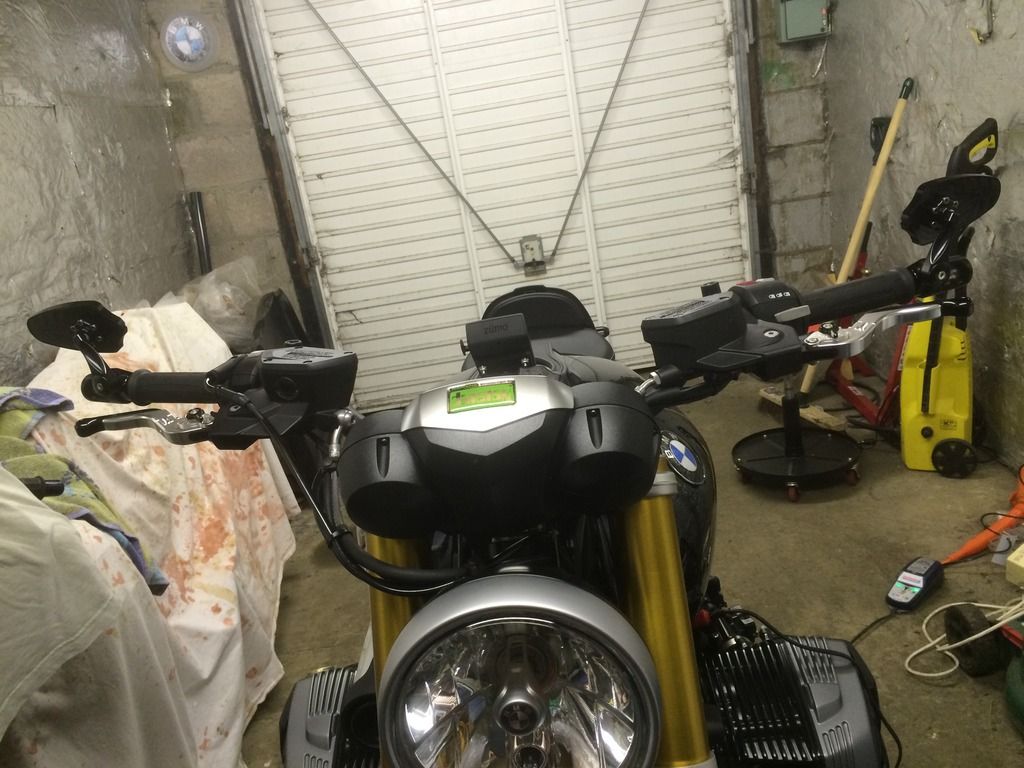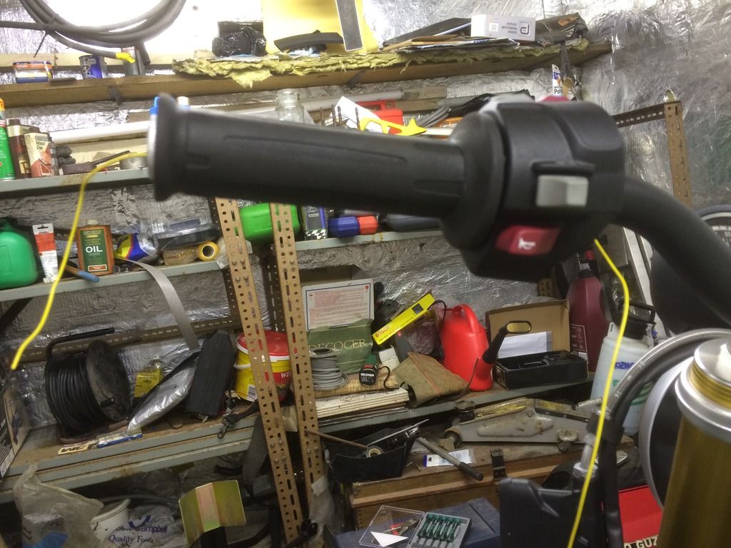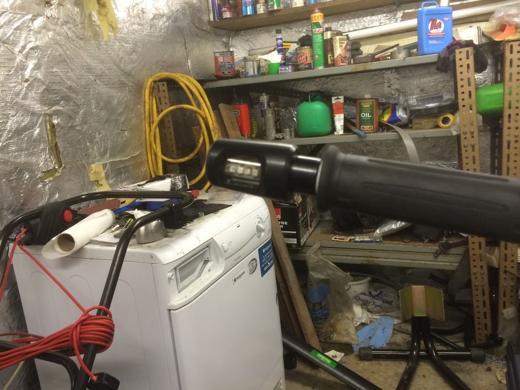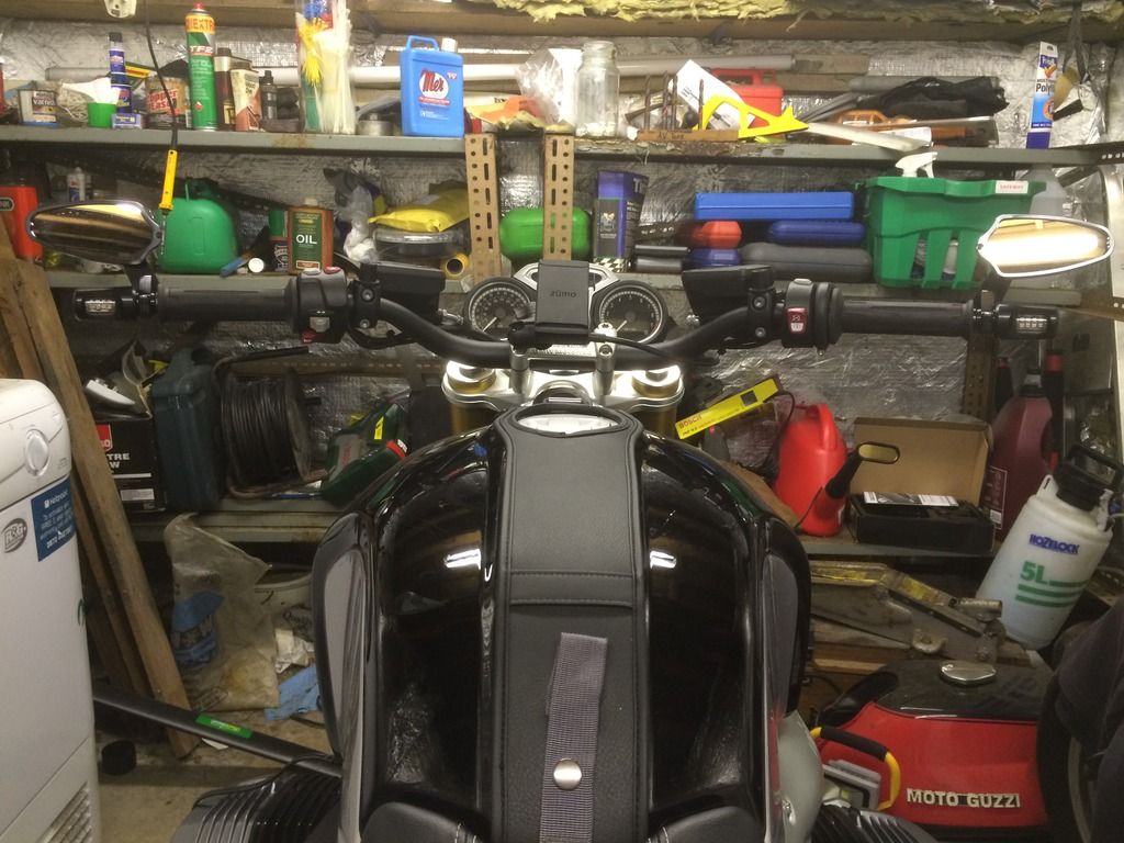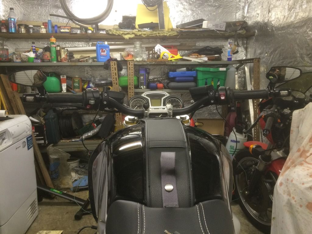 Well here's what I'm getting up to in my den this winter. The weather is officially shitty and my bike has been tucked away in semi hibernation for a month now. Time to amuse myself and start bolting on bits that I'd been gathering since buying the bike, but couldn't stop riding it for long enough to fit.